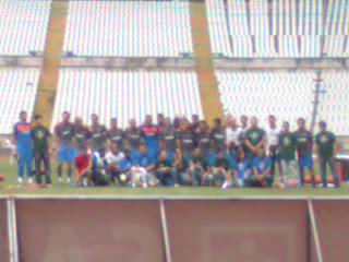 Os Marmanjos desceram de imediato para os balneários, para nossa desilusão. Só o Ronaldo ficou mais um pouco em campo, assinando camisolas e tirando fotografias com umas pessoas.