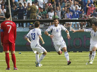 Bem, agora vamos jogar com o Azerbaijão sem Ronaldo - a única coisa que este conseguiu fazer em Israel foi assistir para o golo do Hélder, ver o segundo amarelo da fase de Apuramento e pouco mais - e sem Nani, outros em dúvida, com a margem de erro completamente esgotada. Talvez isto forneça adrenalina suficiente para eles se mexerem a sério. Até porque existe ainda a agravante de o pior segundo classificado de todos os grupos de Qualificação ficar excluído dos playoffs. Mas podia ser pior. Em princípio, o Azerbaijão não terá capacidade de nos colocar problemas. Da última vez que jogámos com eles, ficámos à vontade para lutarmos contra a nossa falta de pontaria, até o Varela entrar e quebrar o gelo. Mas sublinho, mais uma vez, o "em princípio". Não me admirava se, mesmo assim, os portugueses inventassem algo que jogasse contra eles...